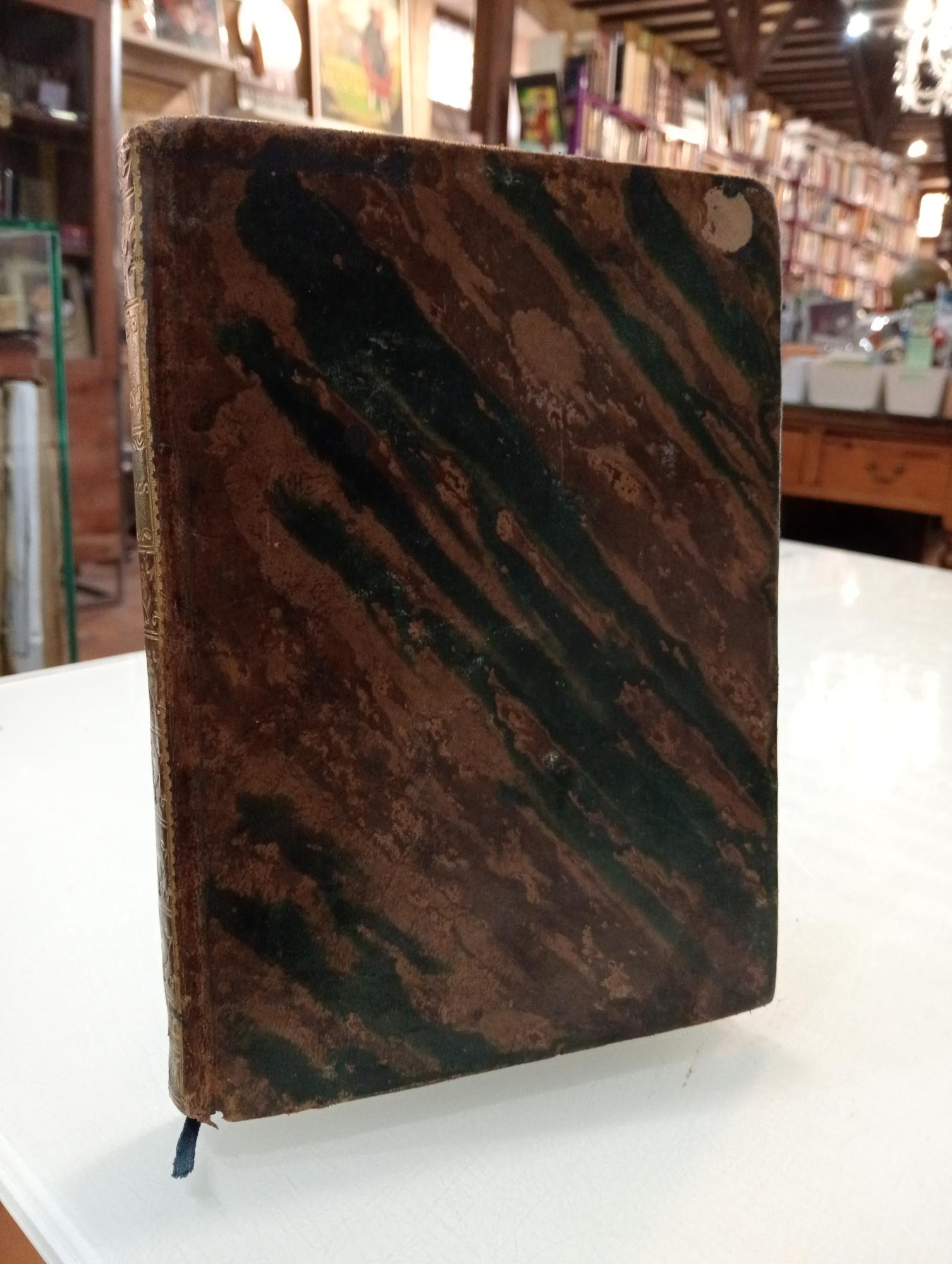Encuadernación en piel con dorados en el lomo, cantos tintados en rojo
