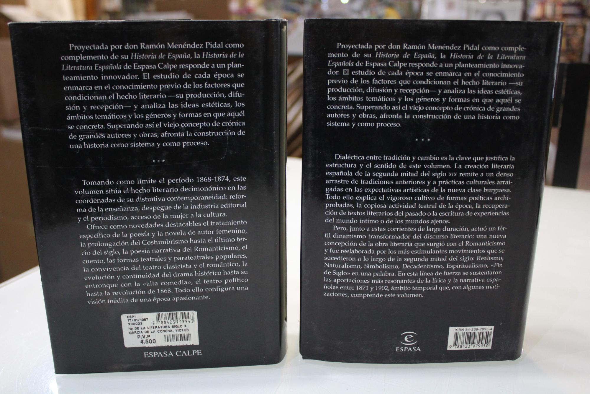 Historia de la literatura española.- Siglo XIX.- Dos volúmenes