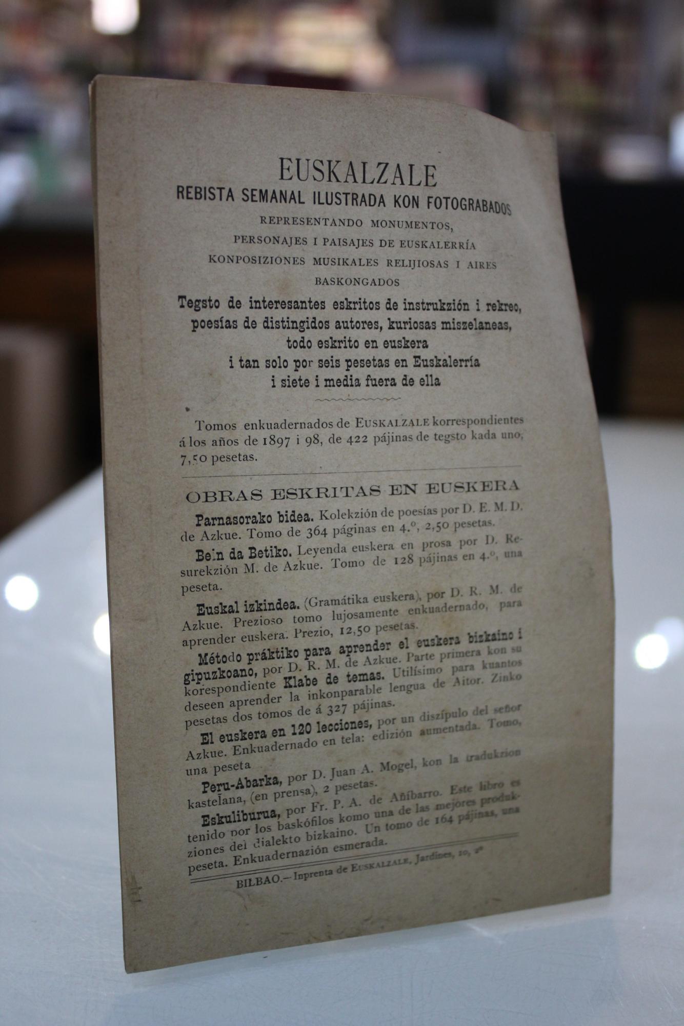 Euskalzale. Rebista Semanal Ilustrada Kon Fotograbados.- Opúskulo kon la ortografía fonétika adoptada en baskuenze.